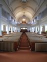 La forme de la voûte de l'église est en arc en plein cintre. Le plan au sol de l'église est rectangulaire. Elle possède une nef à trois vaisseaux.