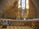 La nef forme un immense vaisseau de 1 400 places disposées en ligne courbe autour de l'autel. Le parquet, avec une dénivellation de 53,3 cm (21 pouces) assure à chacun une vue parfaite du choeur. L'autel, de granit noir, est placé au point de convergence des lignes architecturales. Les stalles du choeur forment un demi-cercle autour du siège de l'évêque. Elles sont fermées à droite par l'orgue et à gauche par l'autel du Saint-Sacrement. Le mobilier et la claustra qui entoure le choeur sont en chêne blanc et en noyer.