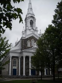 La paroisse at été fondée en 1854, après l'érection d'une première chapelle en 1852. L'église actuelle, d'architecture monumentale néo-baroque, a été construite entre 1909 et 1911 selon les plans de l'architecte Joseph-Pierre Ouellet. Elle est de forme rectangulaire avec choeur en saillie et abside à pans coupés. La façade et les murs extérieurs sont recouverts de pierre de granit taillée à la main venant des champs environnants tandis que les murs intérieurs ainsi que la voûte qui prend la forme d'arc en plein cintre sont de plâtre.