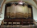 D'esthétique romantique et muni d'une soufflerie d'une puissance étonnante, l'orgue sonne avec beaucoup de brillance. Le buffet comporte de plates-faces latérales de 7 tuyaux muets, ainsi qu'une section centrale composée de 15 tuyaux entourés de 5 plus gros tuyaux de chaque côté (Montre). Ces tuyaux, chantants ou muets, sont peints et décorés de fines dorures.