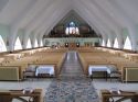La construction de la première église commença au printemps 1931. Hélas, le bâtiment ne put pas célébrer son trentième anniversaire, car le 26 février 1961, alors qu'une forte tempête sévissait dans la région, un incendie dévora l'édifice.